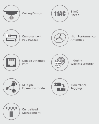 طراحی دوبانده این AP باعث می شود که در یک تراکم بالا و عملکرد بالا را فراهم کند تا new 802.11ac and legacy 802.11a/b/g/n client. وای فای 802.11ac همراه با اترنت گیگابیت، ارسال داده را سرعت می بخشد بدون هیچگونه تنگنا (مانع)، برای برنامه هایی با پهنای باند بالا مانند ارسال ویدیو ها و دانلود های p2p و بازی مناسب است.