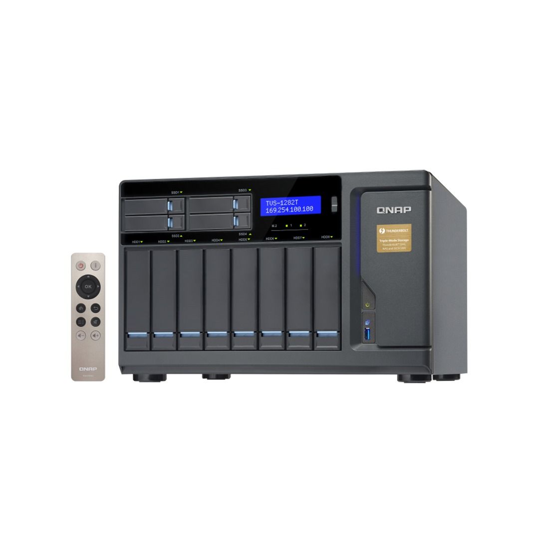ذخیره ساز NAS کیونپ مدل TVS-1282T-i5-16G در ابعاد 234.6×369.9×319.8 میلیمتر و با وزن 11.55 کیلوگرم تولید شده است و در بازار تجهیزات شبکه با کیفیت ساخت عالی به فروش می رسد. این ذخیره ساز تحت شبکه دارای پردازنده Intel Core i5 7500 بوده و از 4 کور و فرکانس پردازنده 3.4 گیگاهرتز برخوردار است. ذخیره ساز تحت شبکه کیونپ مجهز به حافظه رم 16 گیگابایت از نوع DDR4 بوده و از فرم فاکتور Tower بهره می برد. این نس استوریج مجهز به 2 فن خنک کننده در ابعاد 9 سانتیمتر بوده و از نمایشگر LED برای نمایش وضعیت سیستم System status, 2.5″ SSD, M.2 SSD, 3.5″ HDD و دکمه های Power Button, Reset Button, USB One Touch Backup Button بهره می برد. ذخیره ساز NAS کیونپ مدل TVS-1282T-i5-16G دارای منبع تغذیه 100 تا 240 ولت از نوع VAC و 3 تا 1.5 آمپر بوده و از فرکانس 50 تا 60 هرتز برخوردار است.