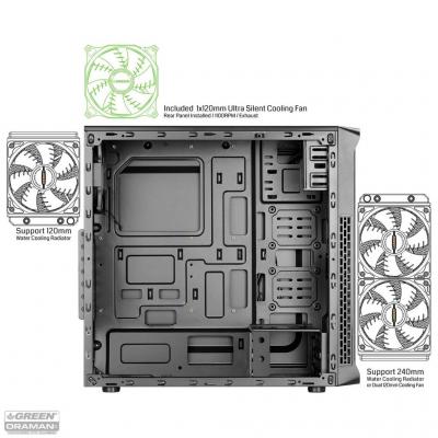 - مجهز به 1 عدد فن 120mm از نوع (Fluid Shield Bearing (FSB در عقب کیس