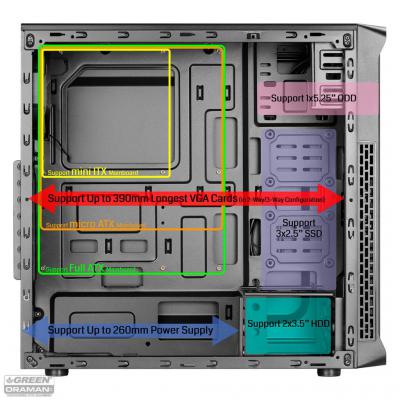- قابلیت نصب کارتهای گرافیک رده بالا با حداکثر طول 390mm